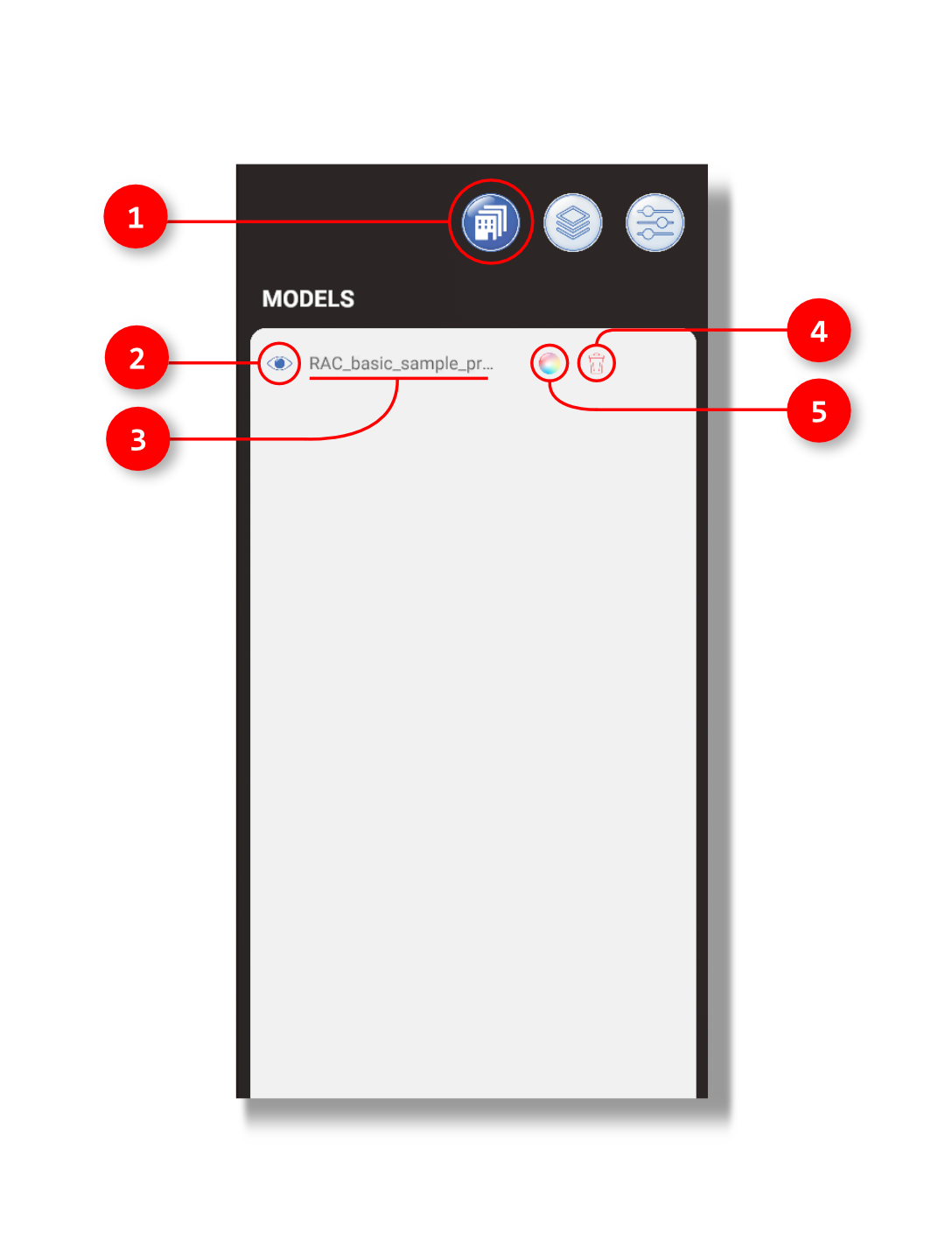 2. This eye icon allows you to isolate or turn on and off certain models by clicking it.