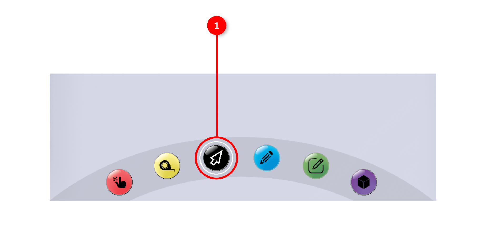 1. The tool is activated by clicking the pointer icon in the interaction tools panel.